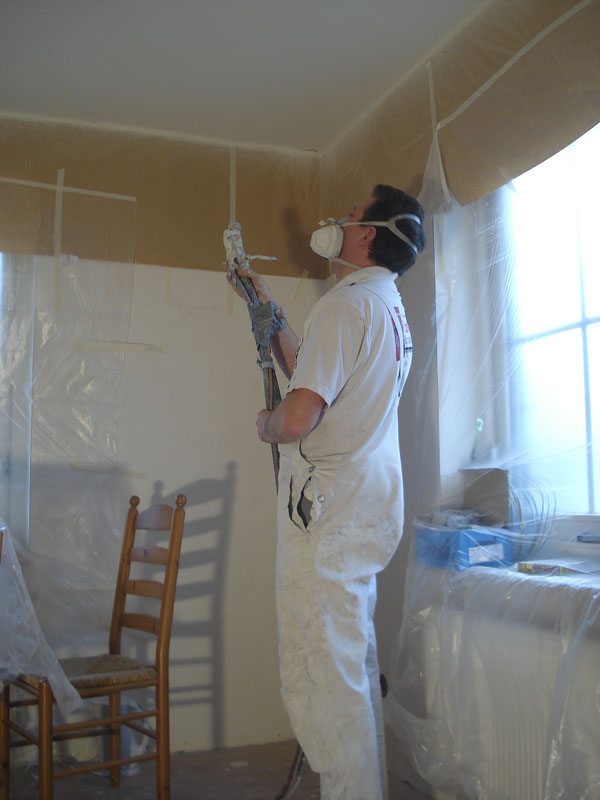 Bij het spackspuiten wordt eerst met afplakken van de ruimtes begonnen, hierna kan begonnen worden met het aanbrengen van het spackwerk op de wanden en/of plafonds.